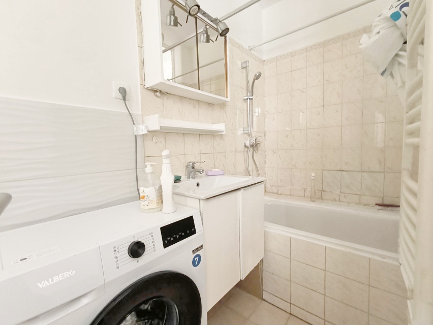 【房间】公寓位于3楼无电梯,窗户多,32平一室一厅,电暖 gaz供热水高效,独立厨房,独立卫浴带窗户,有洗衣,厨房有冰箱,电磁炉,公寓朝内院安静,卧室朝东,客厅朝西南。房间有双人床,客厅有沙发、桌椅。